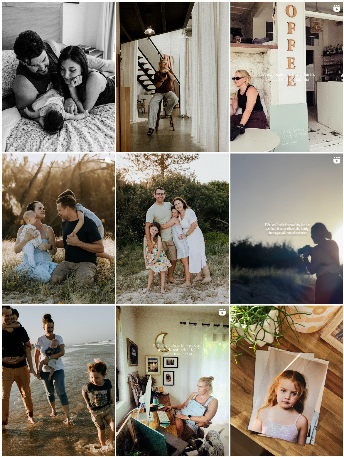 On Instagram @goldensundaysphotography, Tracey gives a beautiful peek behind the scenes of her sessions—mums with sandy feet, toddlers wrapped in muslin, sunsets so good you could frame them twice. She also shares snippets of her love for all things handmade, from clay earrings to crafts that somehow look both stylish and like they belong in your nana’s kitchen (in the best way).